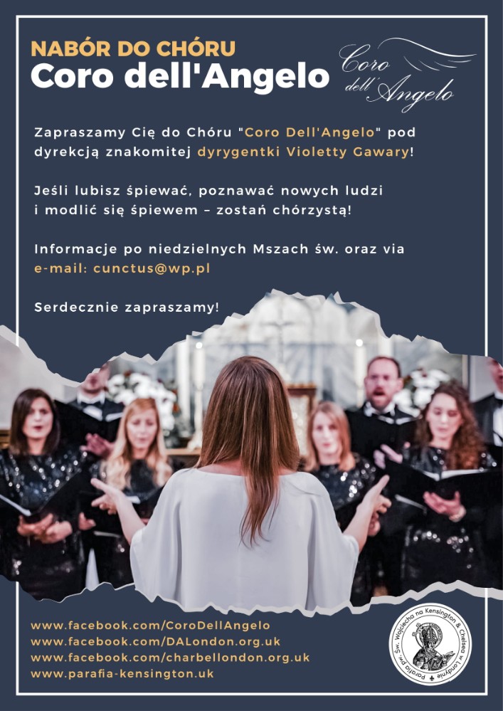 Zapraszamy Cię do Chóru "Coro Dell'Angelo" pod dyrekcją znakomitej dyrygentki Violetty Gawary! Jeśli lubisz śpiewać, poznawać nowych ludzi i modlić się śpiewem – zostań chórzystą!