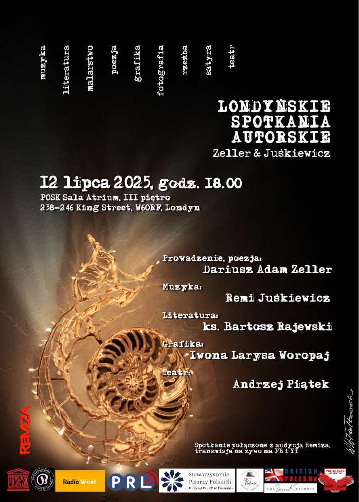 - Sobota, 12 lipca 2025, godzina 18:00, sala Atrium, III piętro, POSK – 238-246 King Street, Londyn.