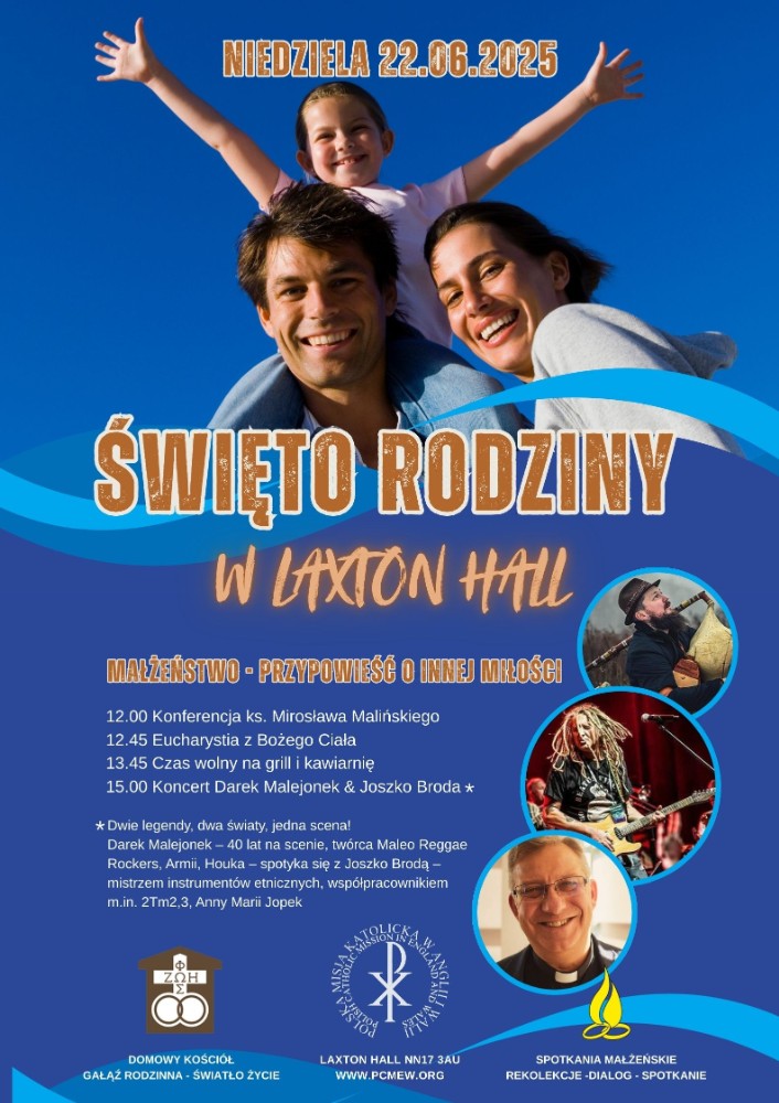 Zapraszamy w sobotę, 21 czerwca, do Laxton Hall (NN17 3AU) na Święto Rodziny. Szczególnie serdecznie zapraszamy rodziców dzieci, które w tym roku przyjęły bądź przyjmą I Komunię Świętą.
